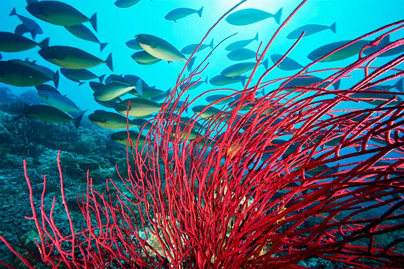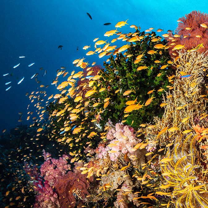 Colorful coral reef with its reef fish in the Pacific Ocean near Fiji. Photo by Greg Lecoeur/National Geographic.